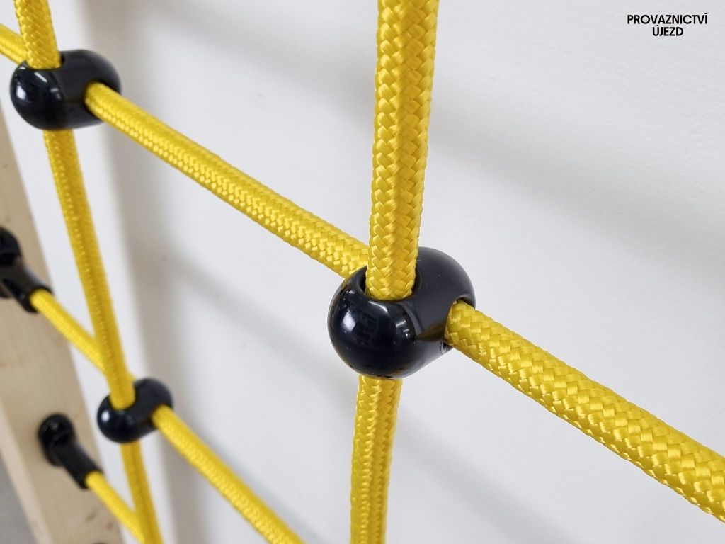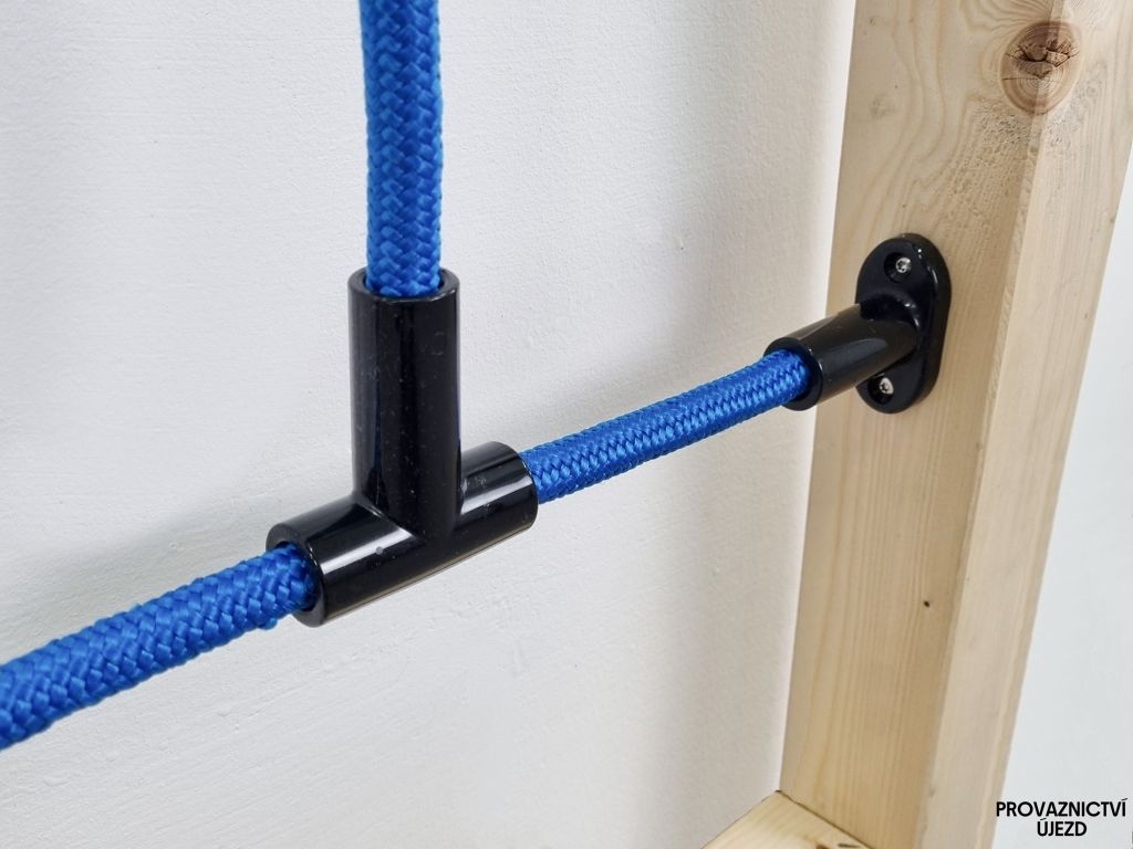Pletené lano s velmi tvrdým jádrem a otěruvzdorným barevným opletem. Průměr přesně sedí do plastového příslušenství. Lano se v plastových komponentech zajišťuje pomocí nerezových červíků. Výhodou je snadná instalace, a možnost vyrobit jednu prolézačku třeba i v pestré kombinaci několika barev.